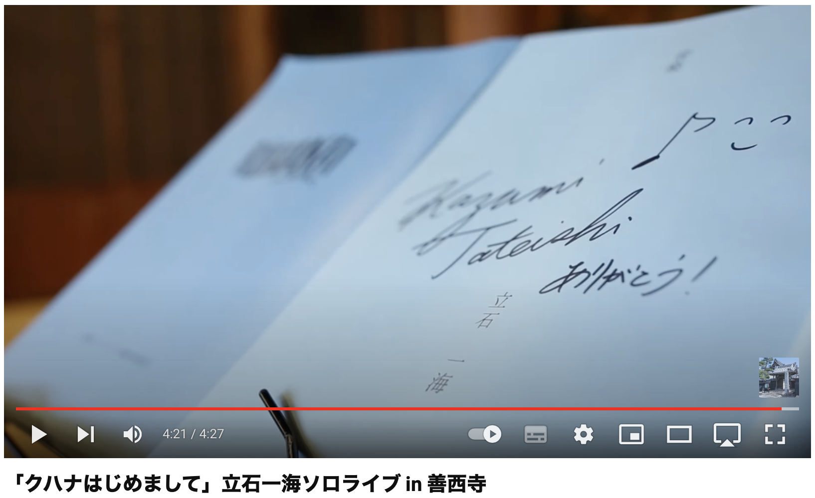 その「クハナはじめまして」を立石一海ソロライブ in 善西寺の映像よりお届けいたします。